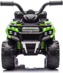 Električni mini quad GTS1155 u atraktivnoj zelenoj boji osmišljen je za male istraživače. Velika, profilirana kola svladavaju neravne podloge i pritom pružaju dobru stabilnost. Zahvaljujući ugodno oblikovanom sjedalu i čvrstom upravljaču, djeca se brzo uče intuitivno upravljati vožnjom.