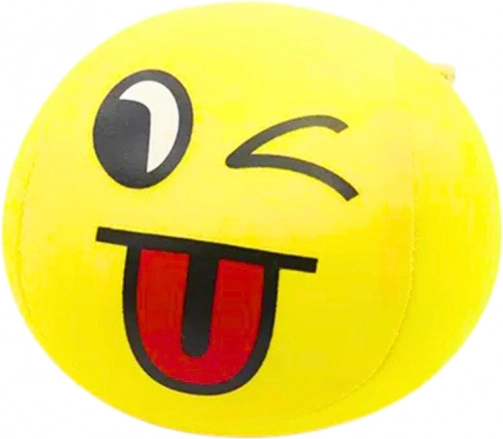 Ova meka loptica u jarko žutoj boji s motivom nasmijanog emoji lica idealna je za igru kod kuće. Ispunjena je sitnim polistirenskim kuglicama, što joj daje lakoću i mekoću, pa je savršena za bacanje, stiskanje ili gnječenje.