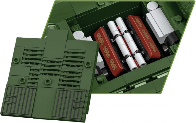 Kupola je rotirajuća, cijev se podiže i spušta, a gusjenice se pri kretanju modela doista okreću. Ispod uklonjive kupole nalazi se imitacija unutrašnjosti, a pod servisnim poklopcem može se smjestiti model motora W-11. Precizni otisci periskopa i drugih detalja naglašavaju autentičnost. Set je u potpunosti kompatibilan s drugim markama kockica.