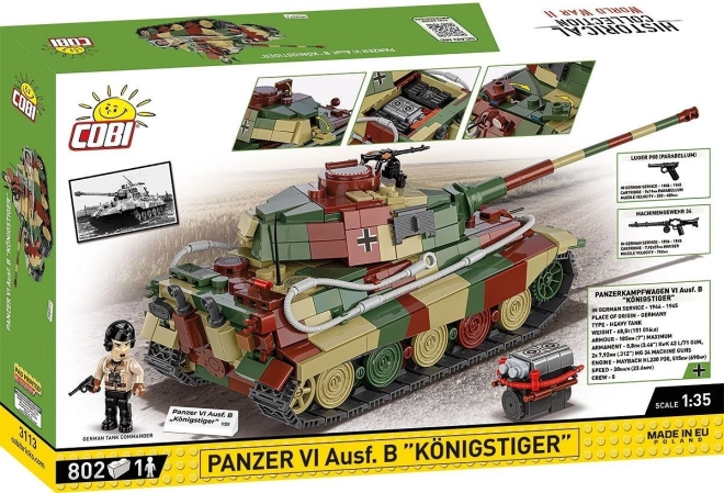 Otkrijte legendu oklopne tehnike s realističnim COBI setom iz edicije Historical Collection. Model Königstiger ističe se vjernim oblikom, autentičnom kamuflažom i precizno izrađenim detaljima. Nakon sastavljanja mjeri približno 30 × 11,5 × 10,5 cm, pa je odličan i za igru i za vitrinu.