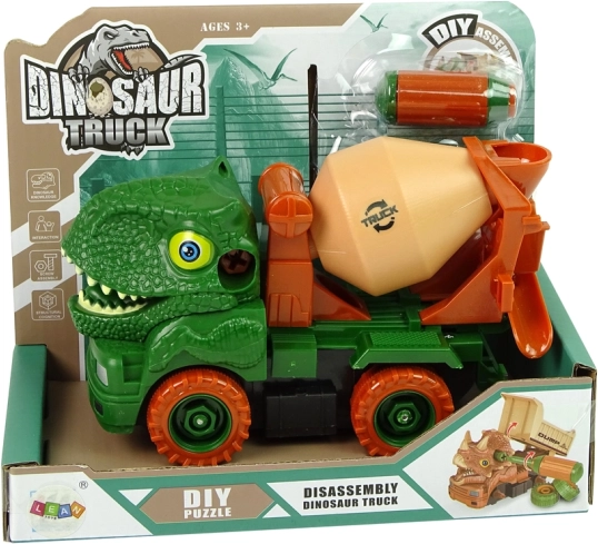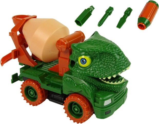 Zabavna dječja miješalica betona u dizajnu dinosaura za male graditelje. Vozilo se uz priloženi odvijač lako rastavlja i ponovno sastavlja, čime se razvijaju fina motorika, logičko razmišljanje i kreativnost. Zahvaljujući inercijskom pogonu dovoljno je povući unatrag i krenuti. Okretni bubanj i realistična dinosaurova glava s detaljima jamče maštovitu igru na gradilištu i u pretpovijesnom parku.