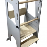 Učni tornjić je višenamjenski i funkcionalni komad namještaja koji potiče samostalnost i motoričke vještine djece. Zahvaljujući pametnom obliku i ogradici oko stajaće površine, dijete se osjeća stabilno i sigurno, dok roditelj ima stalan nadzor. Tornjić se lako pričvršćuje uz kuhinjski element ili radnu ploču tako da je uvijek čvrsto prislonjen uz zapreku nasuprot stepenici.