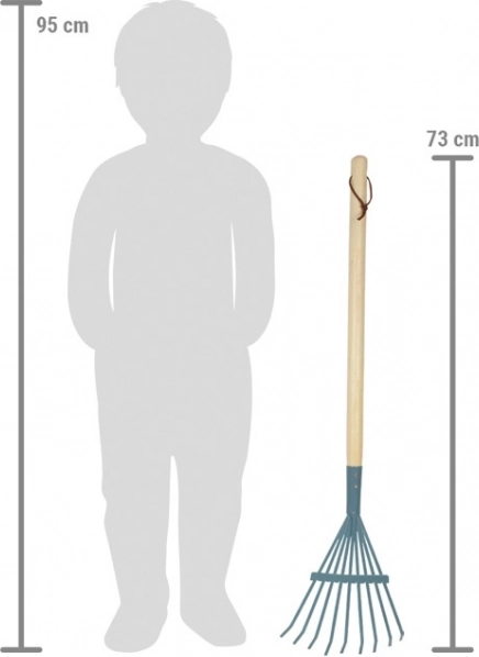 Lagan i izdržljiv dječji alat u modernoj dim sivo-plavoj boji olakšava prve korake u vrtlarstvu. Zahvaljujući drvenoj dršci i metalnoj glavi robustan je, a pritom idealno uravnotežen za djecu. Mali vrtlari njime lako skupljaju lišće, travu i sitne grančice, a nakon rada jednostavno ga objese za praktičnu omčicu.