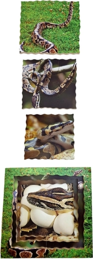 Upoznajte čudesne preobrazbe prirode putem prekrasnih slojevitih puzzli. Ovaj edukativni set donosi slike četiri ključne faze životnog ciklusa zmije: