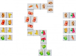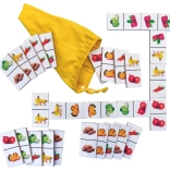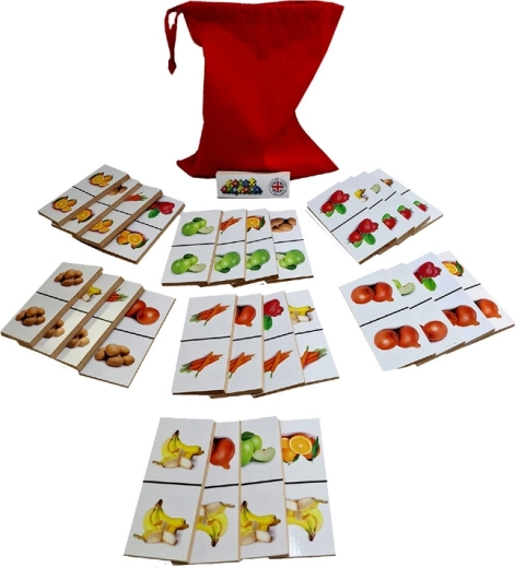 Drveno domino s realnim slikama voća i povrća idealno je za djecu koja žele kroz igru upoznavati različite plodove te razvijati svoje sposobnosti povezivanja i učenja. Igra je osmišljena tako da kombinira tradicionalna pravila domina s edukativnim elementima koji potiču dječju znatiželju i učenje. Pakiranje sadrži 28 pločica s realnim fotografijama koje zamjenjuju uobičajene točkice ili brojke.