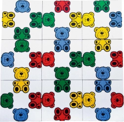 Otkrijte čaroliju šarenih medvjedića u ovoj jedinstvenoj drvenoj logičkoj igri. Sastoji se od 9 kvadratnih dijelova koji na prvi pogled izgledaju jednostavno, ali složiti ih ispravno pravi je izazov.