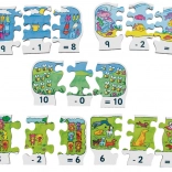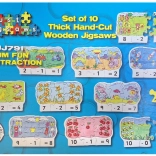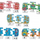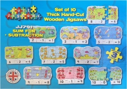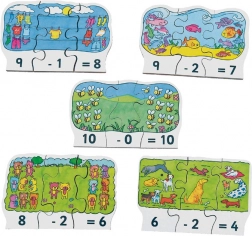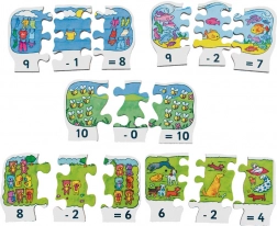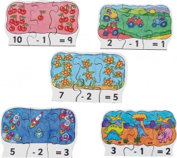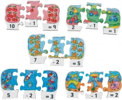 Ovaj atraktivan i edukativan set drvenih puzzli idealno je pomagalo za djecu koja žele vježbati oduzimanje na zabavan način. Svaki dio sadrži: