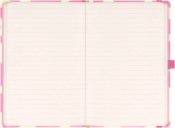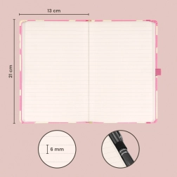 Stilska ružičasta bilježnica za svaki dan s tvrdom koricom, elastičnom trakom za zatvaranje, petljom za olovku i unutarnjim džepom. Nudi 172 točkaste stranice na žutom papiru u praktičnom formatu 13 × 21 cm za vaše ideje, bilješke i dnevnik.