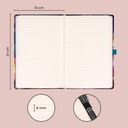 Crtane stranice na žutom papiru pružaju ugodan kontrast i dobru čitljivost. Kompaktna veličina 13 × 21 cm lako stane u torbicu ili ruksak, a ipak nudi dovoljno prostora za 172 stranice bilježaka, zadataka i kreativnih ideja.