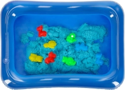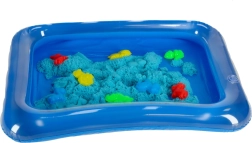 Napuhljivi pješčanik drži sve na jednom mjestu i olakšava pospremanje. Plavi pijesak izgleda atraktivno, dobro se oblikuje u kalupe i ne zahtijeva vodu. Nakon igre jednostavno ga otresete s ruku i površina.