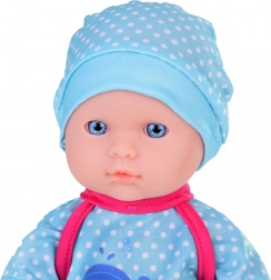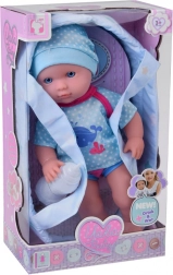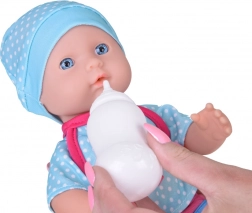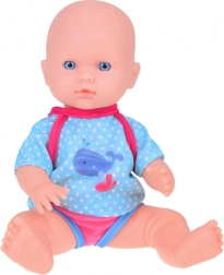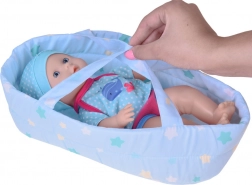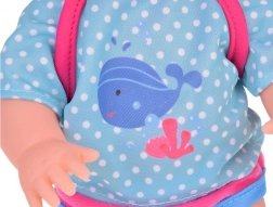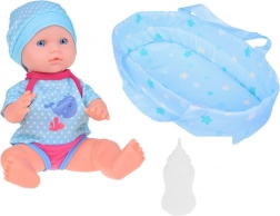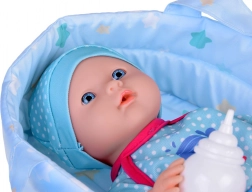 Ovaj set sadrži sve što malim roditeljima treba za brigu o svojim lutkama - lutku s realističnim crtama, nosiljku za lako prenošenje i bočicu za hranjenje. Lutka ima plave oči i obučena je u plavu odjeću s motivom kita, što igri brige o bebi daje autentičnost. Nakon što popije iz bočice, lutka može „piškiti“, što je čini ne samo igračkom, već i zabavnim alatom za učenje male djece.
