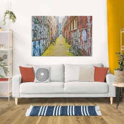 Uličica s grafitima i biciklima stvara raznobojnu i dinamičnu sliku koja osvaja na prvi pogled i nakon slaganja odlično ukrašava interijer.
