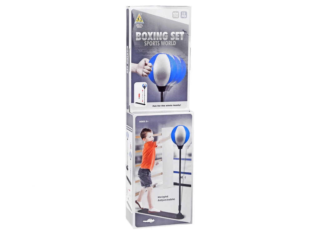 Dječji boks set s podesivom visinom odličan je izbor za kućni trening i zabavu u pokretu. Visinu stalka lako prilagodite od 81 do 123 cm, tako da odgovara visini djeteta. U pakiranju se nalazi boksačka kruška, stalak i ručna pumpica – sve što malom boksaču treba za siguran i zabavan trening koordinacije i refleksa.