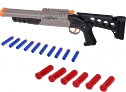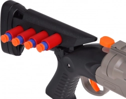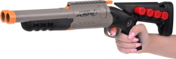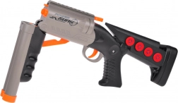 Velika dječja sačmarica za pjenaste metke donosi realističan izgled, dvostruku cijev i sigurne pjenaste strelice s vakuumskim vrhom. Robusna plastična izrada u sivo-crnoj boji, spremište za metke te mogućnost pojedinačnog i istovremenog dvostrukog ispaljivanja jamče sate akcijske zabave i vježbu preciznosti.