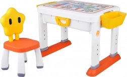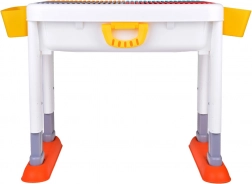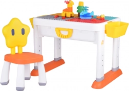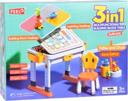 Multifunkcionalni dječji stol 3u1 s podesivim nogama po visini, obostranom pločom za kockice i pisanje te praktičnim spremištem. U pakiranju je i udobna stolica sa stabilnim nogama. Idealan za igru, učenje i objedovanje – sve na jednom mjestu. Obostrana ploča, podesiva visina, spremnik, 55 kockica u setu i protuklizni elementi za sigurno korištenje.