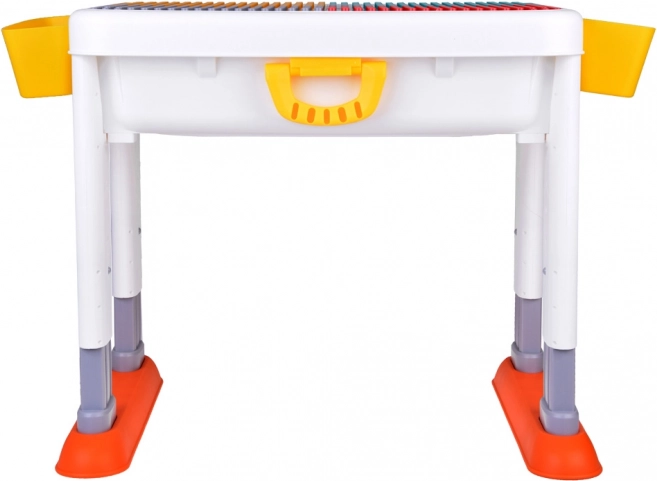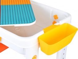 Otkrijte praktičan dječji set koji raste s vašim djetetom. Stol 3u1 nudi dva funkcionalna područja – stranu s izbočinama za kockice i glatku stranu za pisanje, crtanje, igre i objedovanje. Zahvaljujući podesivim nogama (do cca 57 cm) lako se prilagođava dobi djeteta, dok bočni džepovi drže bojice, kocke i sitnice uvijek pri ruci.