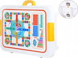 - Obostrana ploča: izbočine za kockice / glatka strana za pisanje i igre