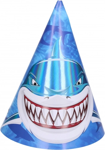 Oživite svaku proslavu stilskim party šeširima s morskim psom visine 15 cm. U pakiranju se nalazi 6 kom šeširića, idealnih za dječje rođendane, tematske partyje s morskim psom i ljetne svečanosti.