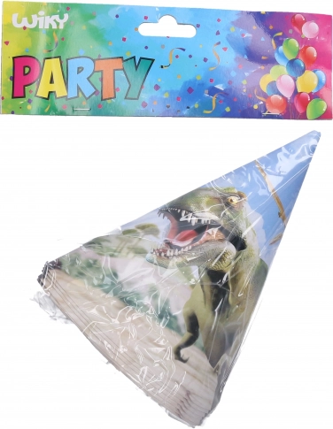 Party šeširi DINO, 6 kom, visina 15 cm. Zabavan dinozauroski dizajn za dječje proslave i rođendanske zabave. Jednostavno stavljanje, odlična dekoracija.