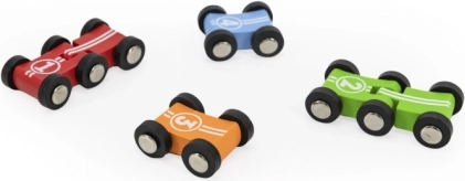 U pakiranju ćete pronaći četiri raznobojna autića sa startnim brojevima, u dvjema vrstama – dva s četiri kotača i dva sa šest kotača – za veću raznolikost vožnje. Igra prirodno razvija logičko razmišljanje, finu motoriku, koordinaciju oko–ruka, učenje boja i brojeva te socijalne vještine tijekom natjecanja (pobjeda/poraz).