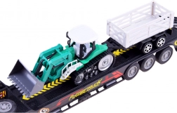 Niskopodna poluprikolica sigurno prevozi traktor s prikolicom. Detaljna izrada i čvrsta plastika osiguravaju dugotrajnu igru.