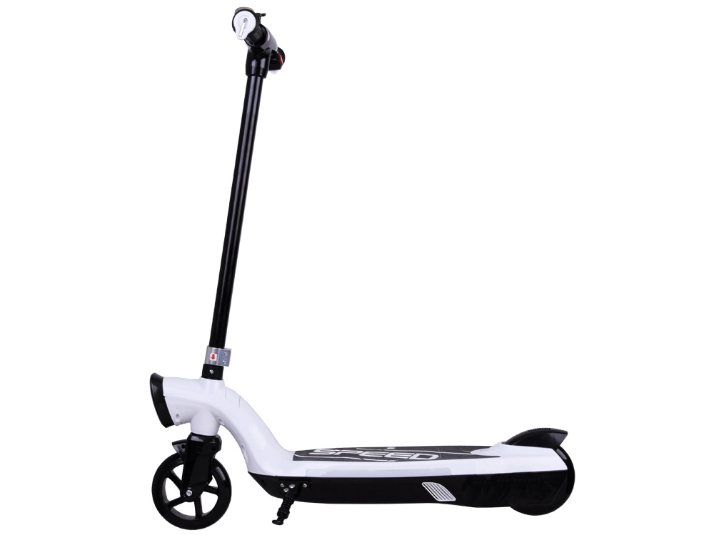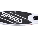 Zahvaljujući kompaktnim dimenzijama i praktičnom postolju lako se sprema u prtljažnik automobila, mali stan ili ured. Hrapav grip s natpisom „SPEED” na podnici osigurava čvrst oslonac, a zvono na upravljaču bolje upozorava okolinu.