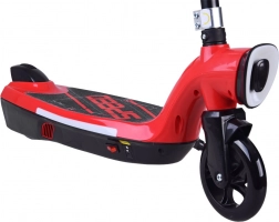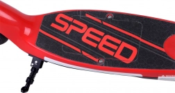 Uživajte u zabavnoj i sigurnoj vožnji s električnim romobilom za djecu. Šarene LED trake sa strana platforme i bijelo prednje svjetlo povećavaju vidljivost, dok široka protuklizna površina s natpisom SPEED pruža stabilnost. Dovoljno je pritisnuti okidač na desnoj ručki i možete glatko krenuti – nakon njegovog otpuštanja aktivira se električna kočnica.