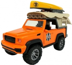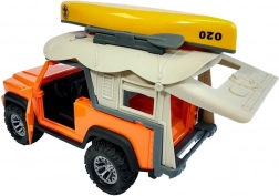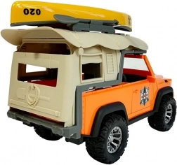 Krenite na zamišljene izlete u prirodu s kamperskim autom JEEP narančaste boje i stilskim žuto‑sivim kajakom. Zahvaljujući svjetlu i zvuku vožnja djeluje realistično, otvarajuća vrata i stražnji poklopac pozivaju na istraživanje interijera, a gumene gume se nose s raznim podlogama u dječjoj sobi.