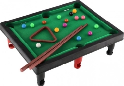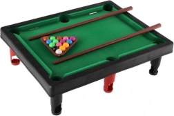 Mini dječji stolni biljar vjerna je umanjena verzija klasičnog stola, koju lako možete postaviti na stol ili drugu ravnu površinu. Čvrsta konstrukcija i igraća površina sa zelenim platnom osiguravaju glatko klizanje kugli i autentičan doživljaj igre i u malom prostoru.