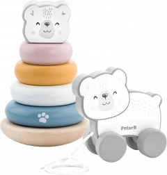 Otkrijte savršeno usklađen set drvenih igračaka Viga PolarB: stabilnu piramidu s polarnim medvjedom za sortiranje i slaganje kolutova te medvjedića na povlačenje koji potiče djecu na kretanje i prve korake. Nježne pastelne boje i dražestan dizajn razveselit će djecu i roditelje.