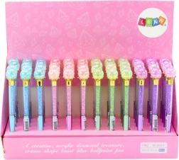 Jedinstvena olovka koja spaja eleganciju i moderan dizajn. Prozirno tijelo s sitnim kamenčićima stvara efektne odsjaje, a završetak u obliku “dijamanta” daje pisanju poseban šarm. Zahvaljujući plavoj tinti i širini vrha 0,7 mm pruža gladak i čitak trag, pogodan za školu, ured i osobne bilješke.