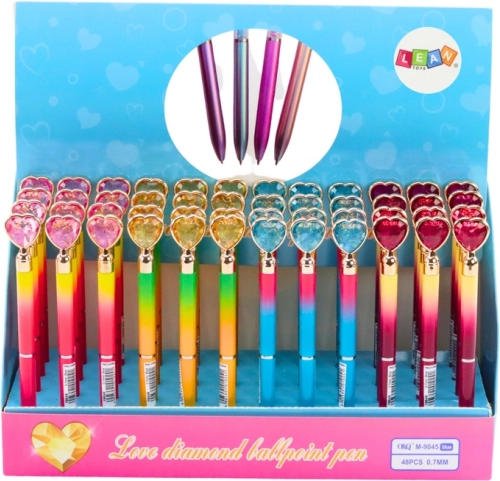 Kuglična olovka s dijamantnim srcem, plava tinta 0,7 mm – mix boja