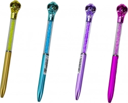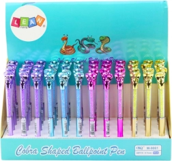 Elegantna kuglična olovka s dekorativnom kobrom i prozirnim tijelom ispunjenim svjetlucavim kamenčićima. Nudi glatko pisanje zahvaljujući plavoj patroni 0,7 mm i izvrsna je za svakodnevnu uporabu i kao poklon. Dostupna u nekoliko boja tijela.
