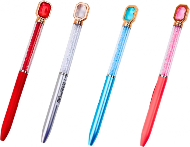 Elegantna kuglična olovka s prozirnim tijelom ispunjenim blistavim kamenčićima i finim kristalom na vrhu. Plava tinta osigurava glatko i ujednačeno pisanje, idealno za svakodnevnu upotrebu i poklanjanje. Dostupna u miksu boja tijela (roza, plava, crvena, srebrna).