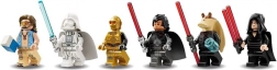Uživajte u dinamičnim bitkama zahvaljujući paru opružnih izbacivača, okretnih topova te odvojivoj kabini i streljačkoj kuli za dvije minifigurice. Šest ekskluzivnih likova uključujući Dartha Jar Jara, Jedi Vadera i „plažnog“ Lukea upotpunjuju kultne svjetlosne sablje i tematske dodatke (npr. kutija s plavim mlijekom).