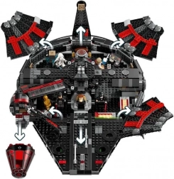 Uđite u alternativni svemir STAR WARS s mračno stiliziranim Mračnim Sokolom Millennium. Model spaja ikonične oblike s novom crno‑crvenom estetikom, bogatim interijerom i igrivim funkcijama. Otvarajući gornji paneli otkrivaju prijestolje Dartha Jar Jara, zapovjedni centar, hiper-pogon, zonu za zabavu i zatvorsku ćeliju.