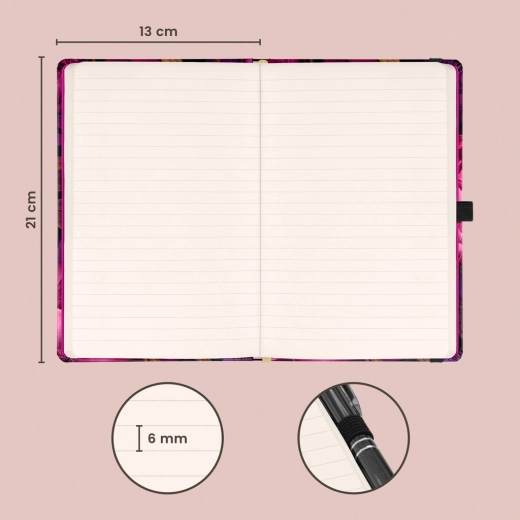 Otkrijte kvalitetu s ovom dojmljivom bilježnicom brenda NOTIQUE. Tvrde korice ne samo da štite sadržaj, već nude i stilski dizajn s motivom ljubičastih cvjetova. Zahvaljujući elastičnoj traci za zatvaranje, nijedna vam se stranica više neće izgubiti.