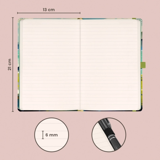 Dimenzija 13 × 21 cm savršeno stane u torbu ili ruksak – bilo da planirate, vodite dnevnik ili zapisujete radne zadatke. Unutarnji džep prima sitnice, posjetnice ili labave papiriće kako biste sve imali pregledno na jednom mjestu.