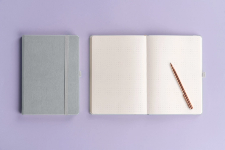 Elegantna točkasta bilježnica Notique Balacron u srebrnom izdanju nudi izdržljivu površinu, ugodan dizajn i format 15 × 21 cm idealan za svakodnevne bilješke, planiranje i skiciranje.