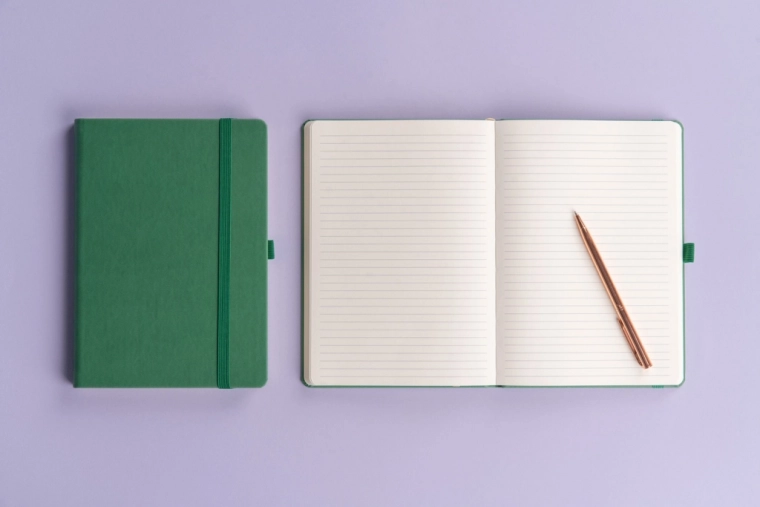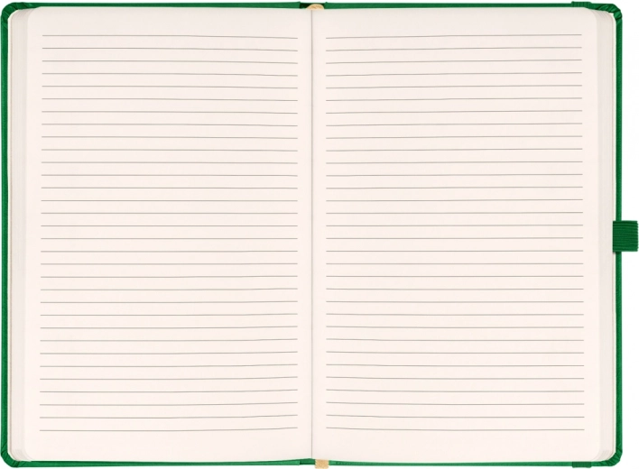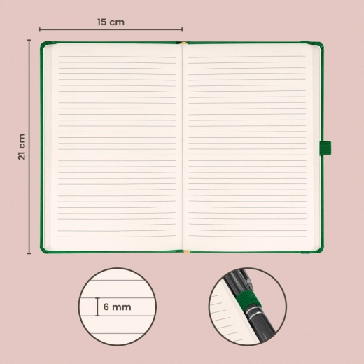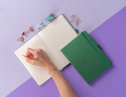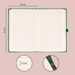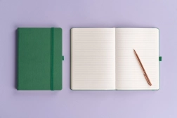 Stilska bilježnica Aprint u zelenoj boji izvrsna je opcija za ured, školu i putovanja. Unutrašnjost s crtama olakšava pregledno vođenje bilješki, a zahvaljujući ugodnoj površini s finom teksturom bilježnica djeluje profesionalno i elegantno.