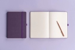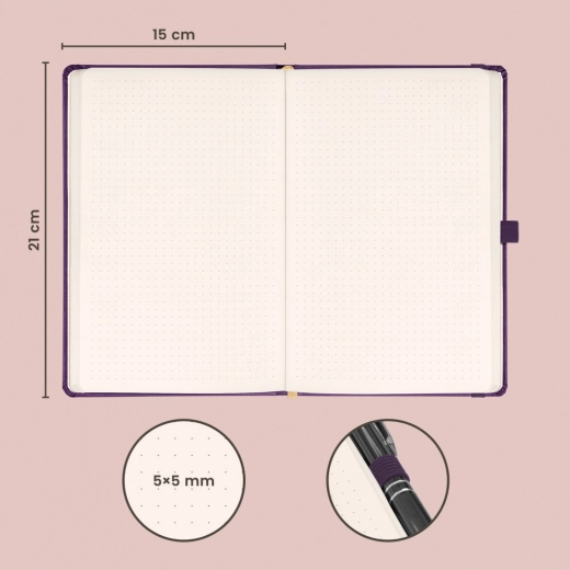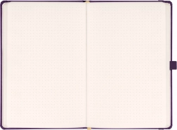Tražite reprezentativnu i funkcionalnu bilježnicu za posao i slobodno vrijeme? Točkasti notes NOTIQUE Aprint Neo u ljubičastoj izvedbi nudi univerzalni raspored s točkama koji olakšava pregledno pisanje, crtanje grafova i vođenje bullet journala. Blago strukturirana površina djeluje elegantno i idealna je za utiskivanje logotipa ili personalizaciju.
