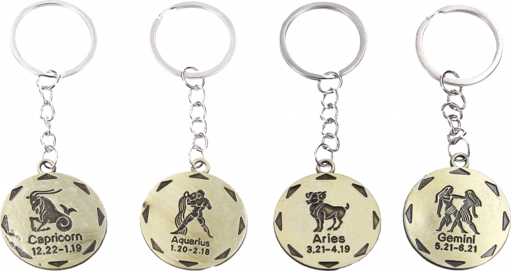 Stilni okrugli privjesak za ključeve s motivom zodijaka. Dostupno 12 znakova – idealan dodatak za ključeve, ruksak ili torbicu te odlična ideja za poklon.