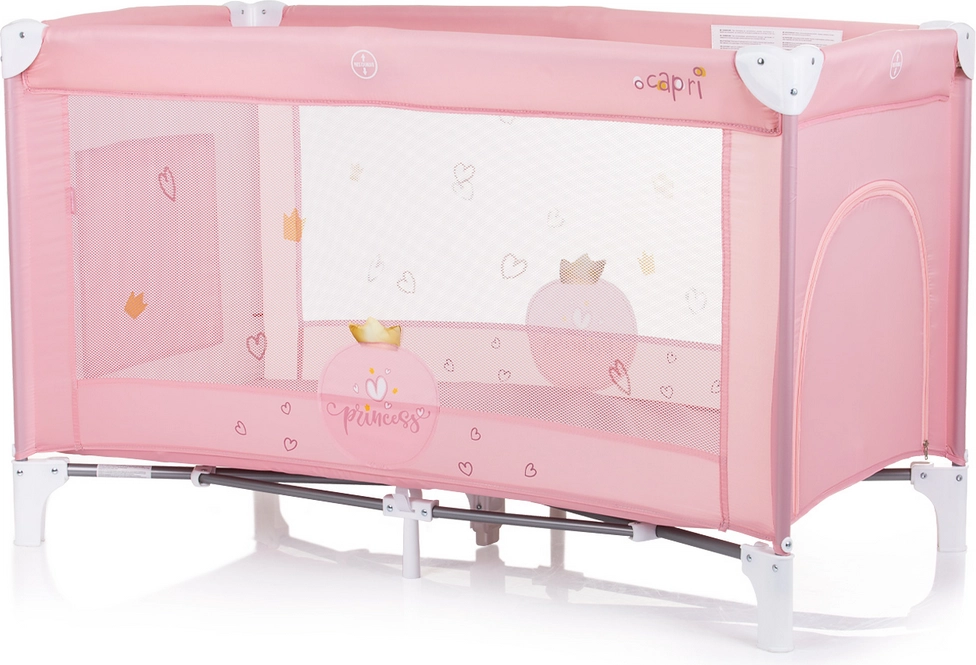 Putni krevetić Capri brenda Chipolino u preslatkoj ružičastoj varijanti s motivom princeze idealan je izbor za putovanja i svakodnevnu upotrebu. Nudi udobnost i sigurnost za vaše dijete te jednostavno korištenje za vas.