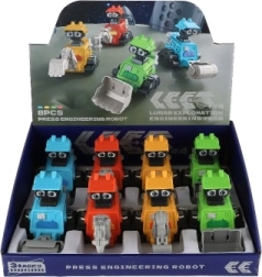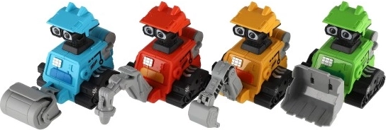 Roboti su izrađeni od izdržljive plastike i dolaze u četiri atraktivne varijante inspirirane građevinskom tehnikom. Kompaktne dimenzije 8 × 10 × 14 cm savršeno pristaju dječjoj ruci te potiču maštu i razvoj fine motorike.