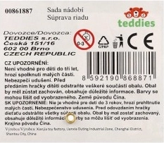 Sastavni dio su dekorativni plavi pladanj, šalica za kavu, mali vrč, boca/čaša, posudica za mlijeko, pribor za jelo i razne slatke poslastice. Set izvrsno razvija socijalne vještine, komunikaciju i maštu u igri s prijateljima.