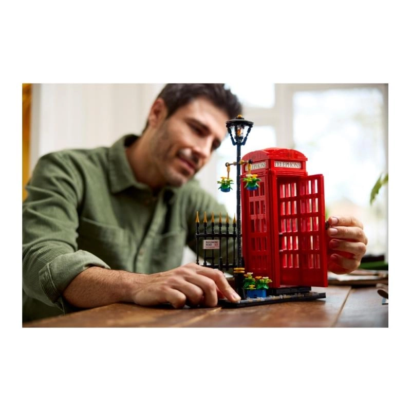 Stvorite kod kuće dio britanske povijesti s detaljnom londonskom telefonskom govornicom, koja oduševljava ikoničnom crvenom bojom, prozirnim ispunama na vratima i natpisom TELEPHONE. Sastavljiva scena uključuje popločani pločnik, uličnu lampu s cvijećem, ogradu i uličnu signalizaciju – sve spremno za izlaganje na polici, u dnevnoj sobi ili uredu.