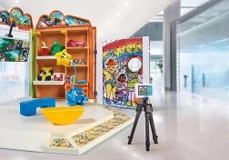 Uđite u svijet Playmobil Moj Život pun mašte i zabave. Ovaj set sadrži sjajno dizajniranu igračku s dvije figurice i puno igračaka. Djeca mogu isprobati najnovije igre u igraonici ili napraviti zabavne uspomene na foto zidu.
