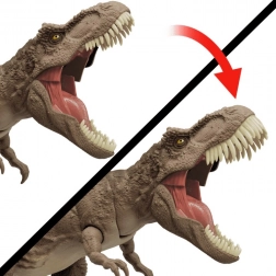 Ova sjajna igračka Tiranosaurus Rex iz kolekcije Jurassic World donosi akcijsku zabavu s naprednim pokretima i stvarnim detaljima. Igračka omogućuje dinamične pokrete glave gore-dolje povezane s otvaranjem čeljusti i rikom. Što brže pritisnete gumb, to je akcija intenzivnija!