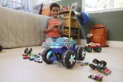 Uronite u svijet napete igre s Hot Wheels Monster Trucks Mega-Wrexom u mjerilu 1:15. Ovaj jedinstveni model opremljen je svjetlima i zvukovima koji se aktiviraju pri svakoj interakciji, pružajući djeci neprestano inspirativno iskustvo puno energije.