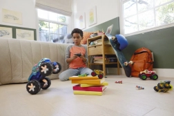 Pritiskom i držanjem akcijskog gumba auto se podiže na dva kotača i izvodi trik! Boje i dekoracije pojedinih modela mogu se razlikovati, no svaki od njih jamči sate zabave pune dinamike.